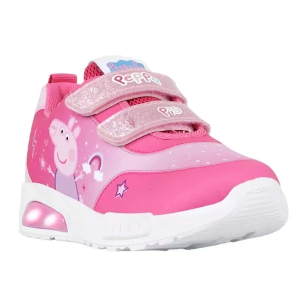 Descubre las Zapatillas Footy, la opción ideal para las niñas fanáticas de Peppa Pig de la casa. Con luces que se encienden al pisar, estas zapatillas combinan diversión y funcionalidad, perfectas para el uso diario.  Su diseño de personajes animados encantará a los niños, mientras que el abrojo y el elástico garantizan un ajuste cómodo y seguro. Además, su suela liviana permite un movimiento ágil y divertido. ¡Haz que cada paso sea una aventura luminosa!